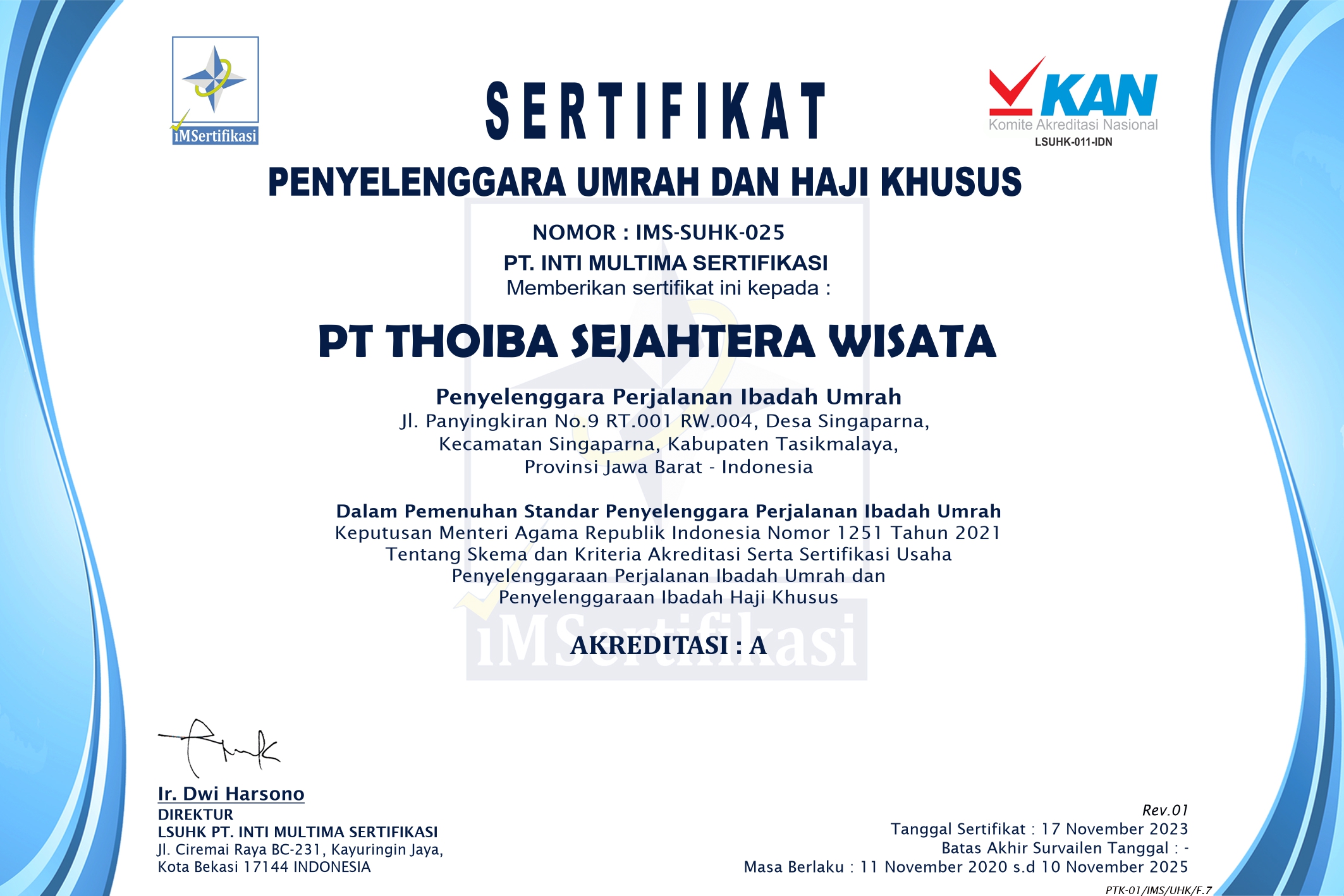 PT. Thoiba Sejahtera Wisata atau biasa disebut dengan TSW Travel merupakan PPIU (Penyelenggara Perjalanan Ibadah Umrah) yang memiliki izin resmi dari Kementerian Agama Republik Indonesia dengan nomor izin UU.535 Tahun 2020. TSW Travel telah beroperasi sejak tahun 2016 yang berpusat di Singaparna, Kabupaten Tasikmalaya.
